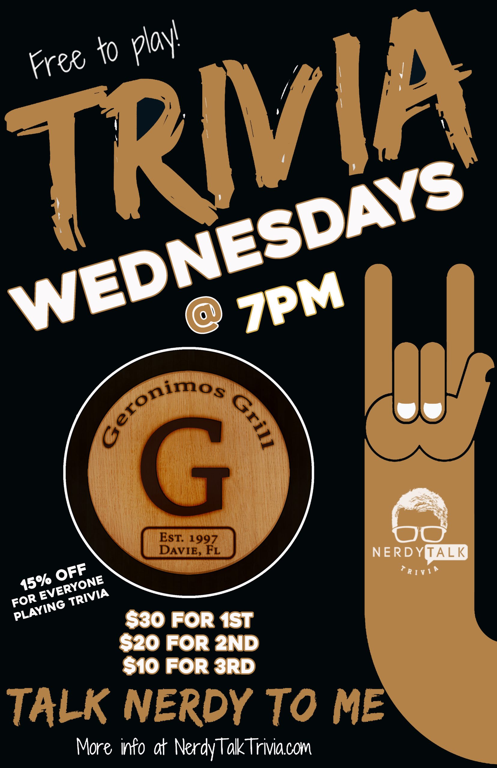 630 PM, Wednesdays | TRIVIA hosted by Jami